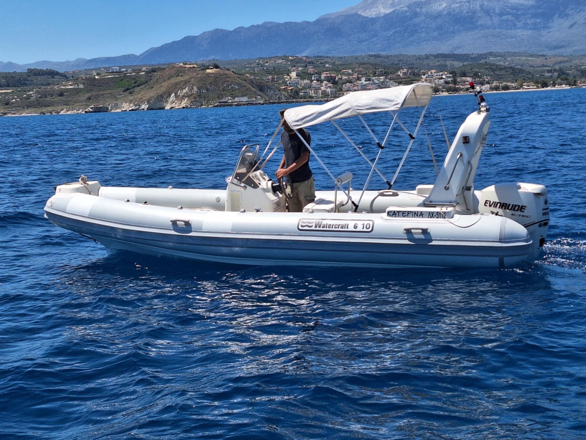 Our A-Hellas 6m boat is ideal for exploring the numerous hidden coves of the east side of Chania .
